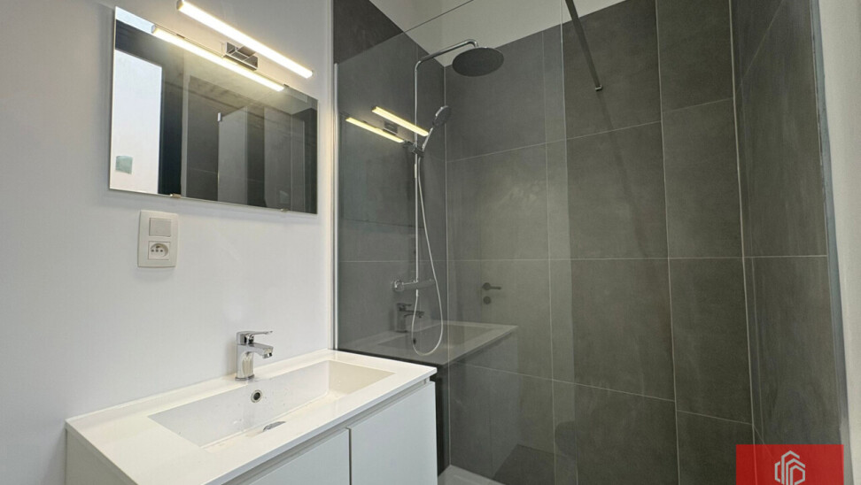 Badkamer met douche, verwarmd handdoekenrek en natuurlijke lichtinval
